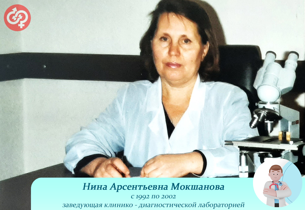Нина Арсентьевна Мокшанова окончила Пензенский государственный институт им. В.Г. Белинского в 1978 году. После окончания учебного заведения с 13 февраля 1979 года начала свою профессиональную деятельность в должности врача-лаборанта клинико-диагностической лаборатории Пензенского областного кожно-венерологического диспансера. С 1992 по 2002 годы трудилась в должности заведующей клинико-диагностической лабораторией. Нина Арсентьевна внедряла в практику лаборатории исследования, направленные на диагностику инфекций, передаваемых половым путем, организовывала контрольные выезды в лаборатории районных медицинских организаций, занималась обучением лабораторных кадров по диагностике ИППП и заразных кожных заболеваний. Нина Арсентьевна также много лет возглавляла профсоюзную организацию кожно-венерологического диспансера, активно занималась общественной работой. Сотрудники лаборатории и по настоящее время тепло вспоминают Нину Арсентьевну.