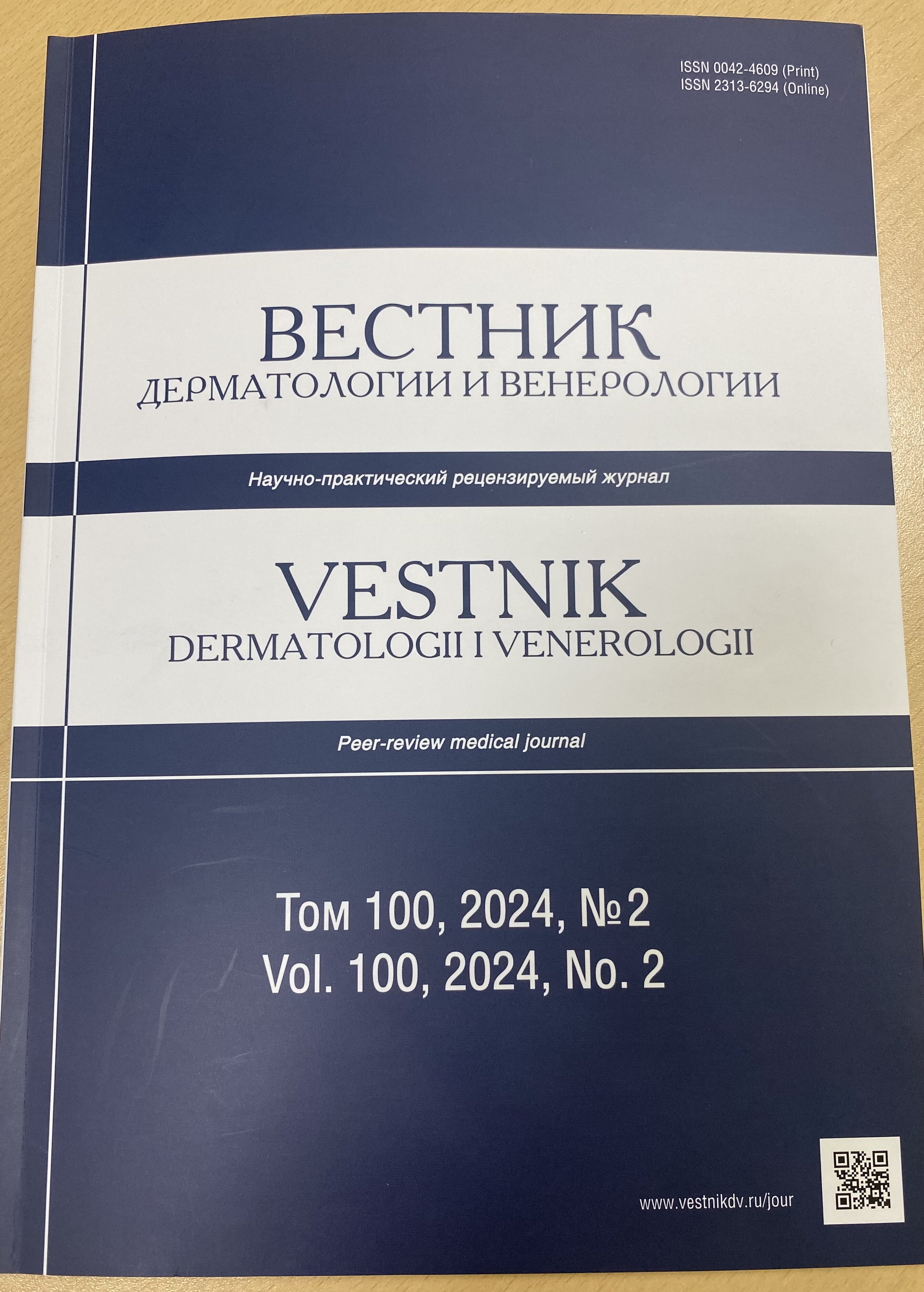 Во втором номере самого известного и популярного научно-практического журнала для дерматовенерологов «Вестник дерматологии и венерологии» опубликована научная работа, авторами которой стали главный врач нашего Центра Сергей Борисович Рыбалкин и врач-дерматовенеролог высшей категории Элина Валентиновна Кулакова.