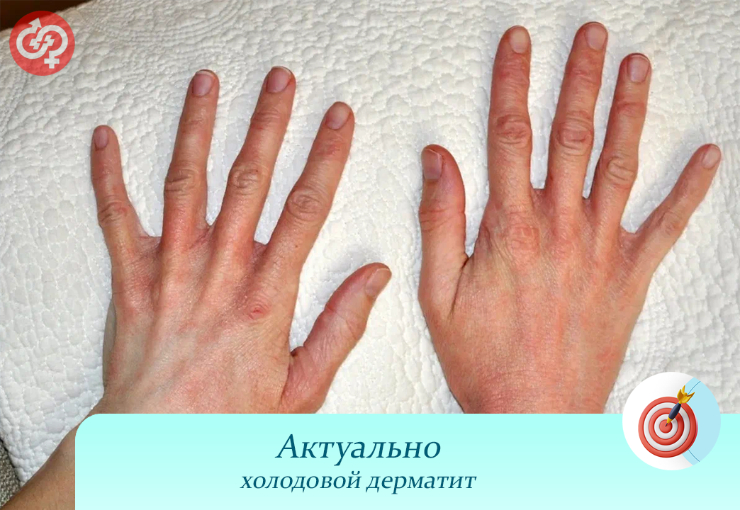На фоне сильных морозов у человека может развиться так называемый «холодовой дерматит» - это воспаление кожи, развивающееся в ответ на воздействие низких температур. Он проявляется возникновением красных пятен, сопровождающихся зудом и чувством жжения. В дальнейшем появляется шелушение, возможно образование трещин и мелкой сыпи. Типичная локализация - открытые участки кожи: лицо, шея, ушные раковины, кисти рук; несколько реже - колени и внутренняя поверхность бедра. Иногда этот дерматит сопровождается чиханием, водянистыми выделениями из носа (холодовой ринит) и слезотечением (холодовой конъюнктивит).