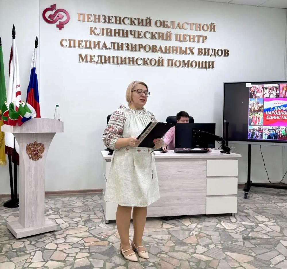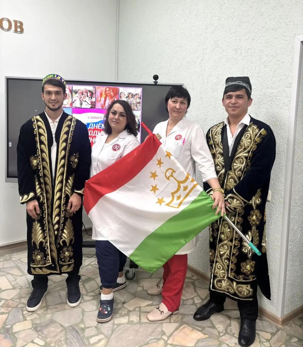 С поздравительной речью к сотрудникам выступил главный врач Рыбалкин Сергей Борисович, подчеркнув важность единства и взаимопонимания в многонациональном коллективе.