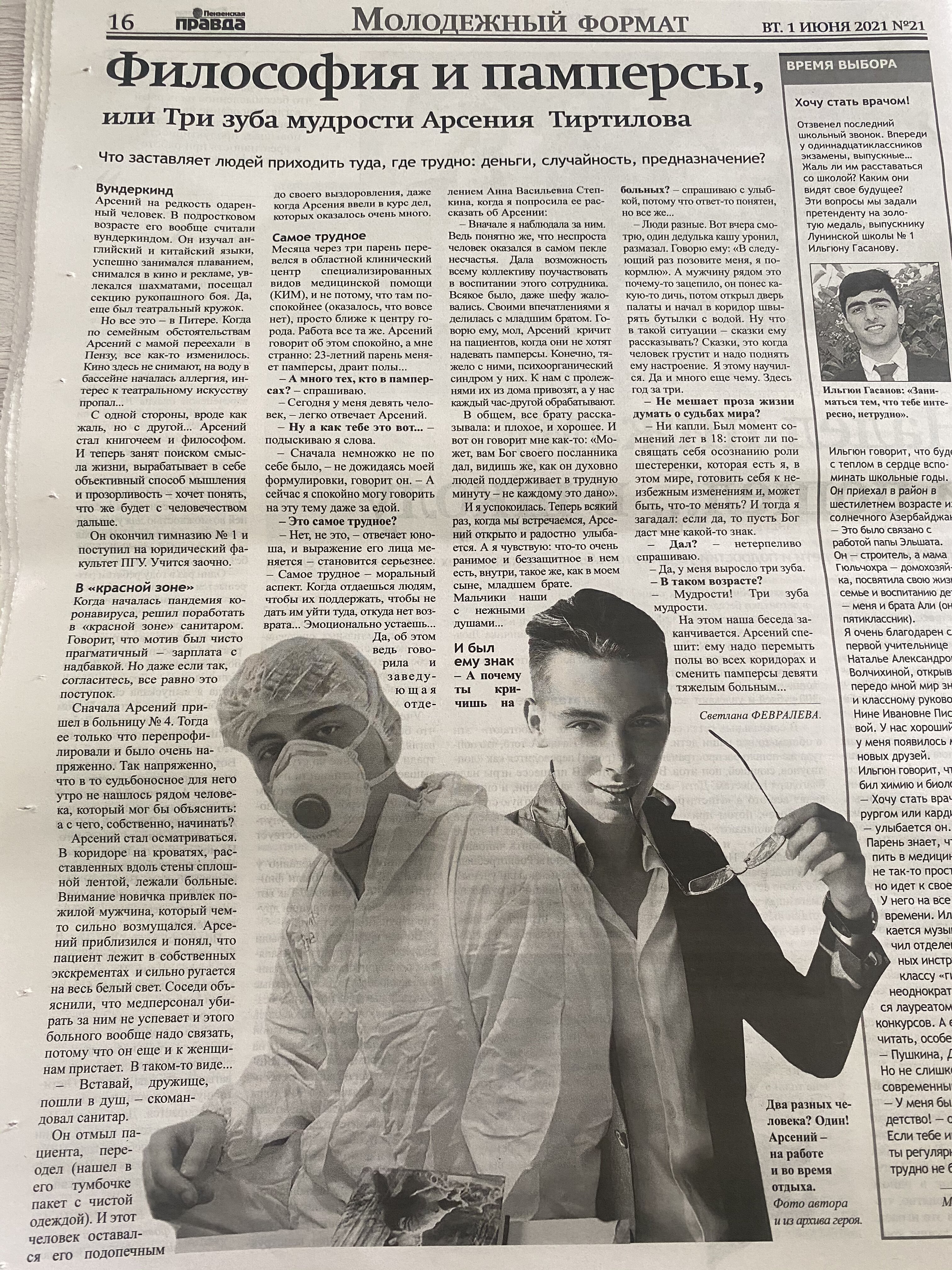 СМИ о нас: Арсений Тиртилов - санитар инфекционного отделения 5, студент ПГУ