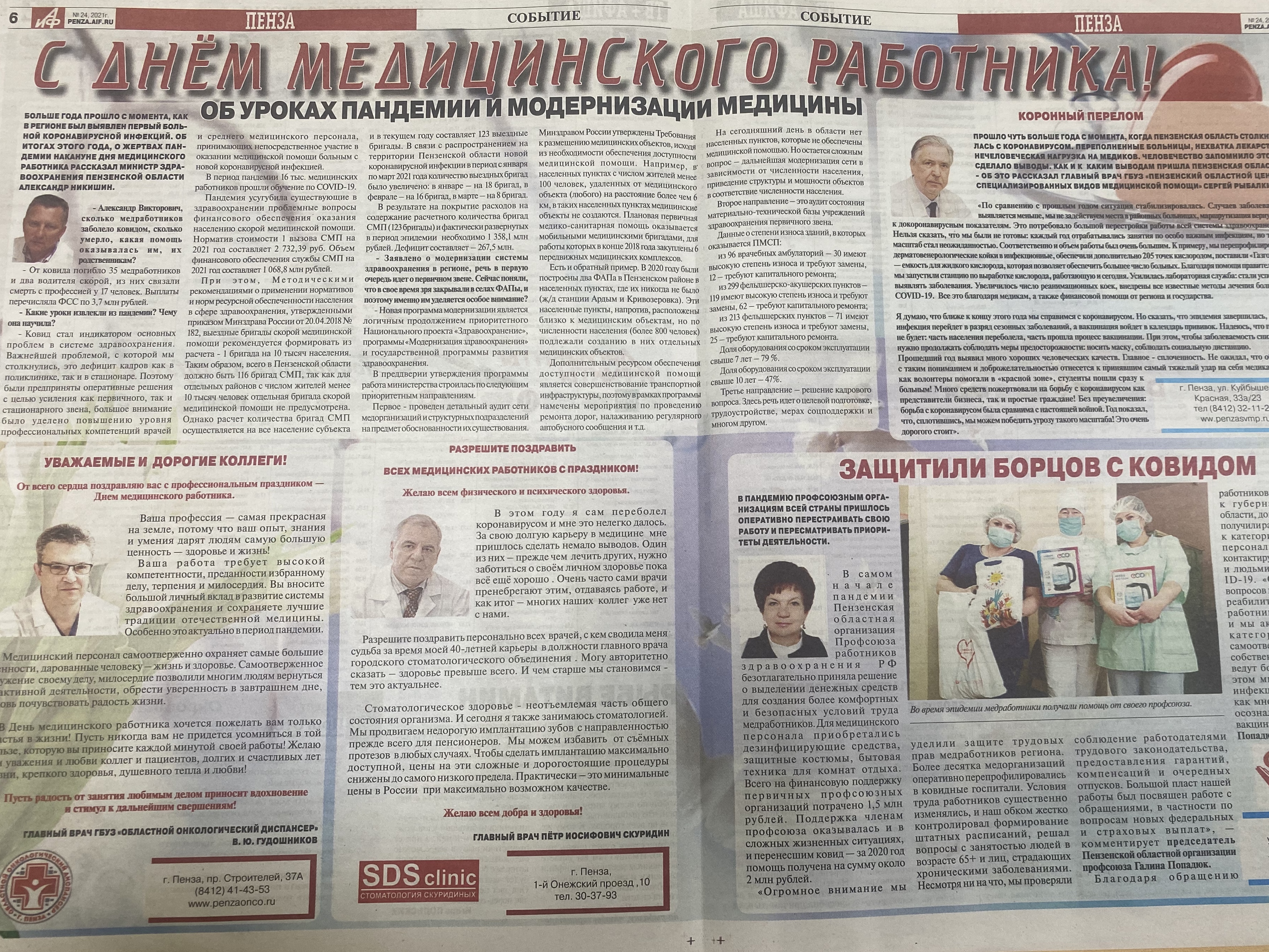 СМИ о нас. Главный врач Рыбалкин Сергей Борисовиич об уроках пандемии, "Аргументы и факты"