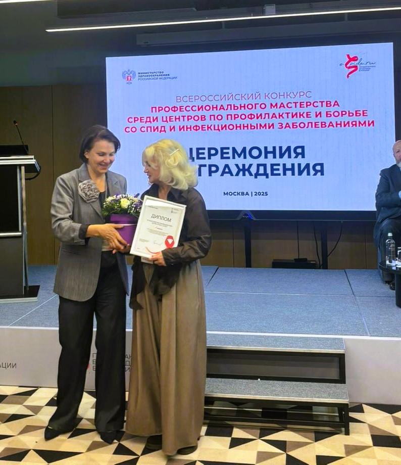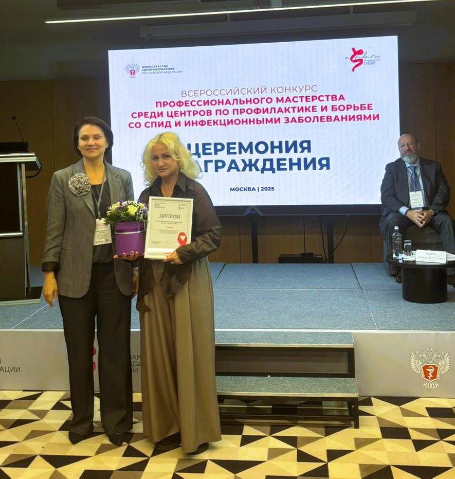 В упорной борьбе с лучшими командами страны наш Центр профилактики и борьбы со СПИД стал лауреатом I степени в номинации «Лучшая практика взаимодействия Центра СПИД с социально ориентированными некоммерческими организациями».