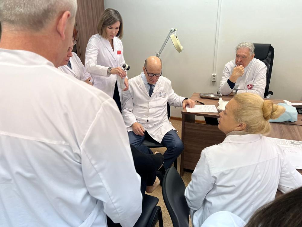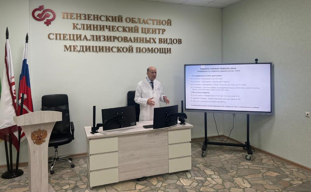 Наш Центр посетил заслуженный врач РФ, доктор медицинских наук, профессор СамГМУ Евгений Владимирович Орлов. Евгений Владимирович проконсультировал больных с тяжелыми формами хронических заболеваний кожи, дал рекомендации по дальнейшей тактике ведения пациентов. После осмотра пациентов прочитал лекцию врачам- дерматовенерологам на тему «Комплексная терапия акне в зависимости от степени тяжести». Были разобраны современные методы лечения данного заболевания.